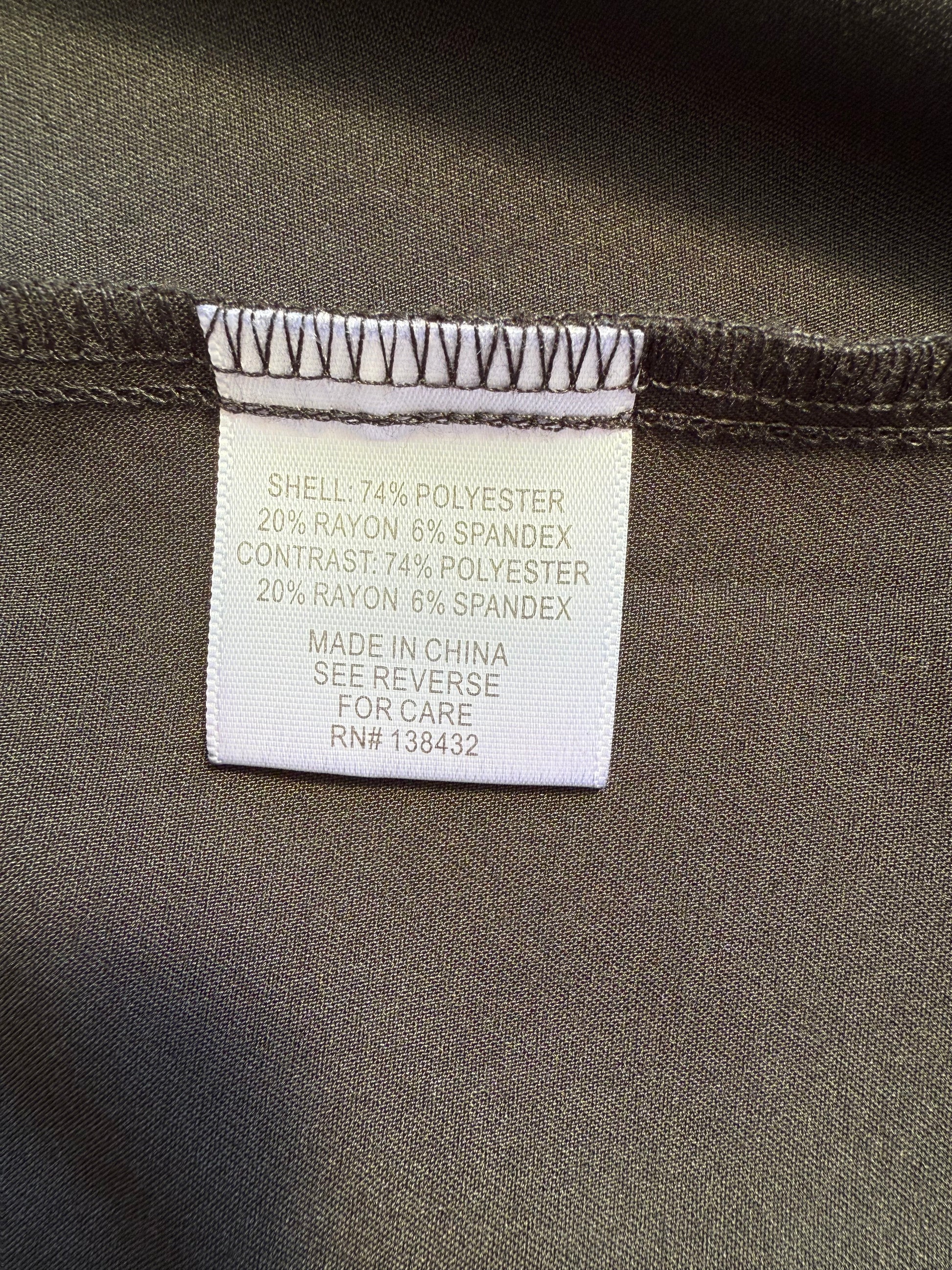 Shell & Contrast: 74% Polyester, 20% Rayon, 6% Spandex