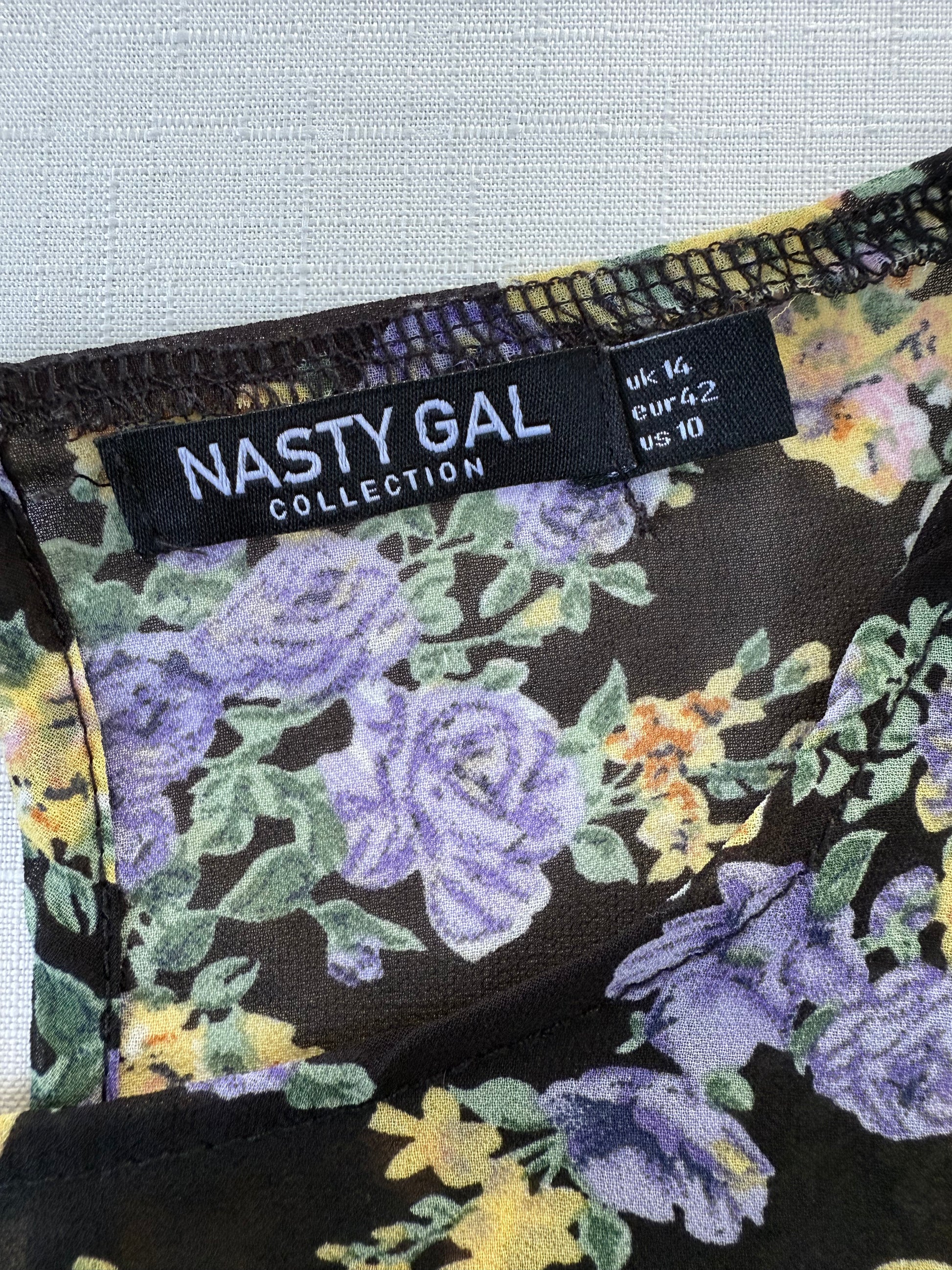 Nasty Gal Sheer Floral Ruffle Blouse