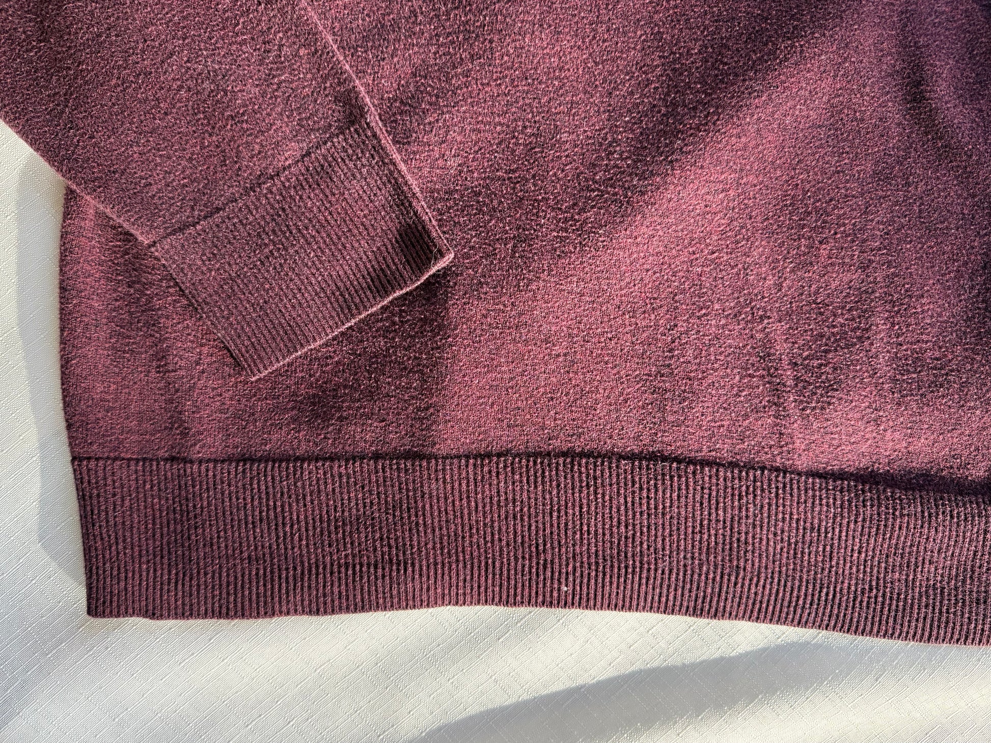That perfect in-between sweater: soft, lightweight, and unfussy in the best way. This deep plum knit has a gentle drape, classic V-neckline, and ribbed cuffs and hem that give it structure without stiffness. Easy to wear on its own or layered under a jacket, it’s the kind of piece that quietly becomes a repeat favorite.
