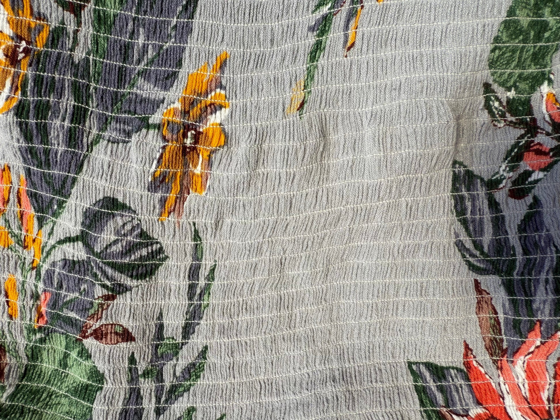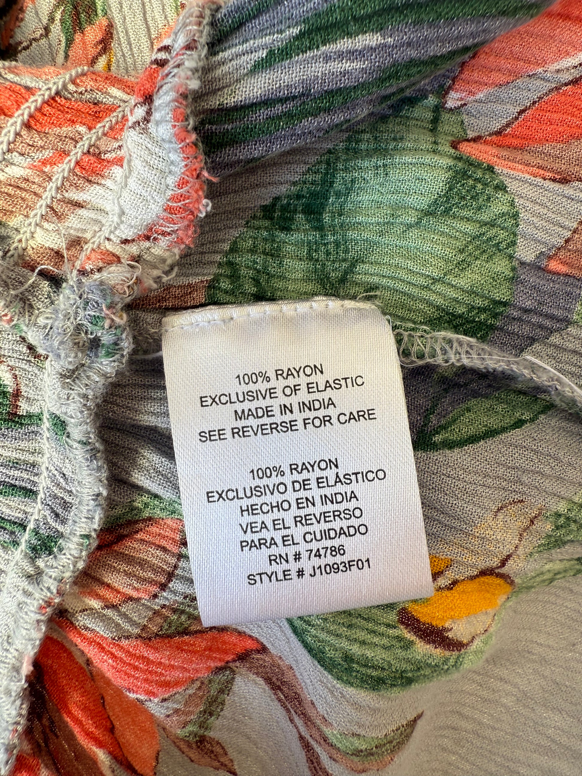 Fabric: 100% rayon (exclusive of elastic) – lightweight and breathable with a crinkled texture.