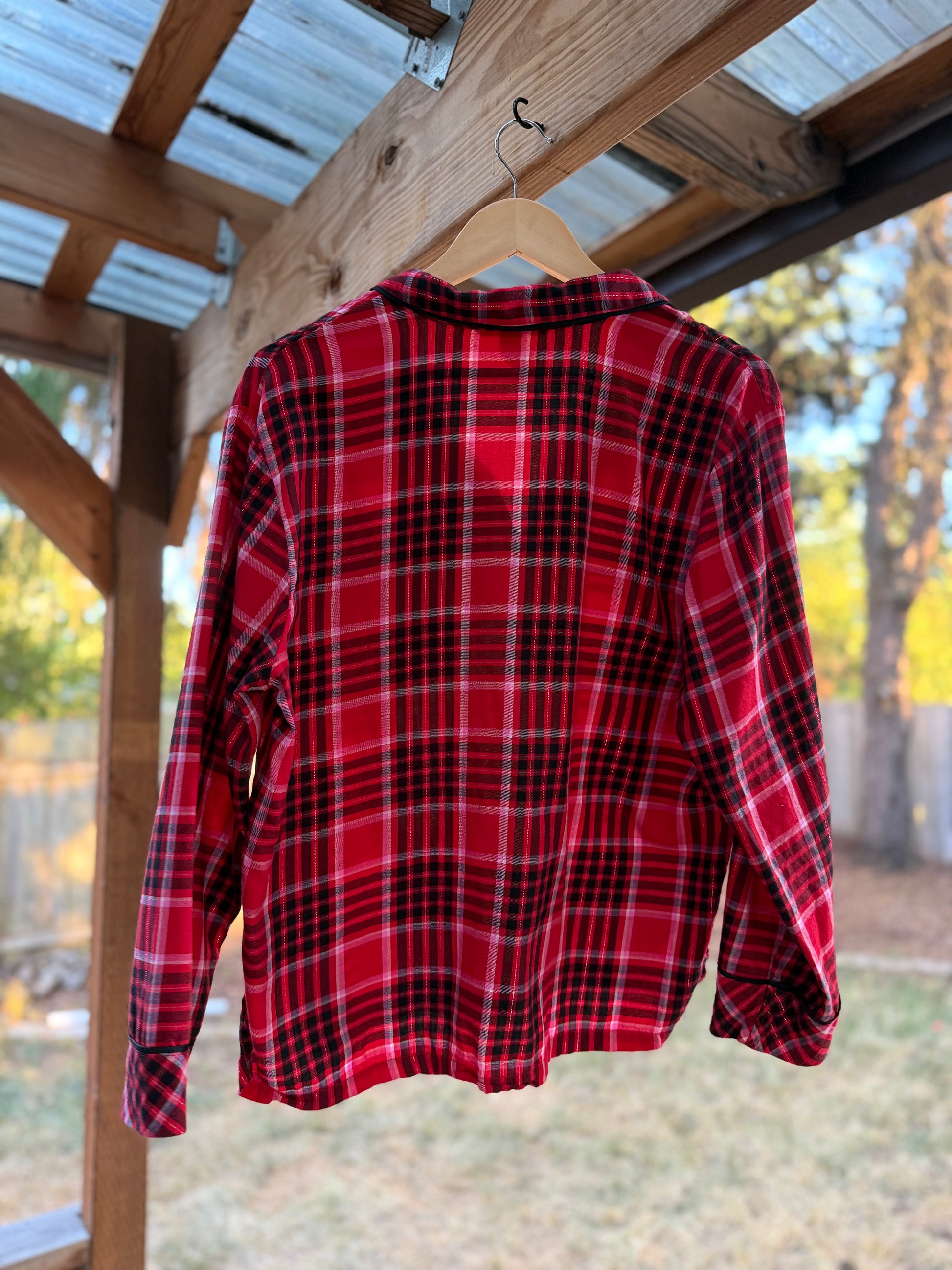 Easygoing, effortlessly cute, and just the right kind of cozy. This red plaid button-down from Victoria’s Secret gives soft sleepwear vibes with a nod to grunge. Think movie night, cabin mornings, or layered open over a tee for that downtown-not-trying-too-hard look. Silky-soft feel with a relaxed drape and chest pocket detail.